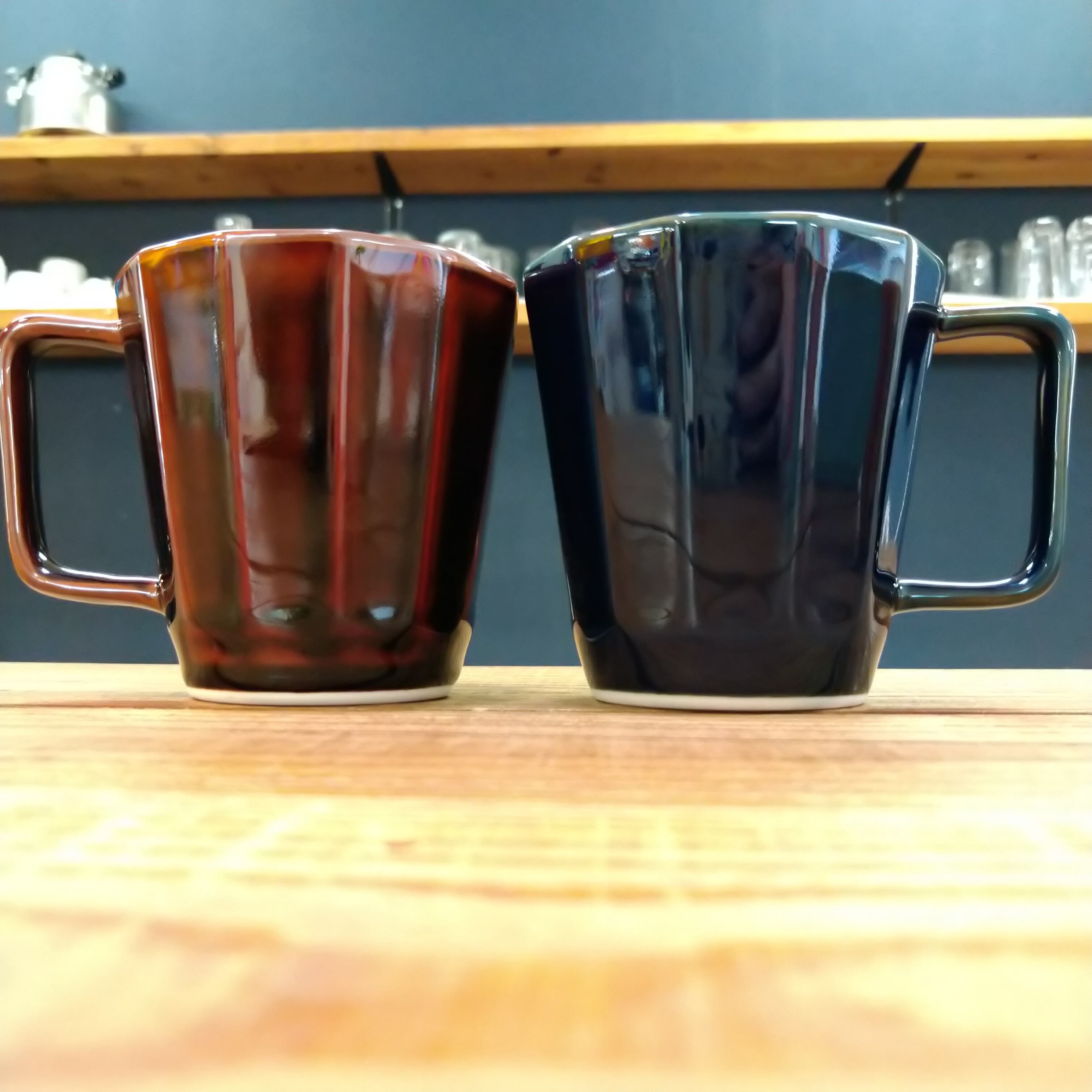 カクカクっと12面に面取りされた面白いマグカップ。
