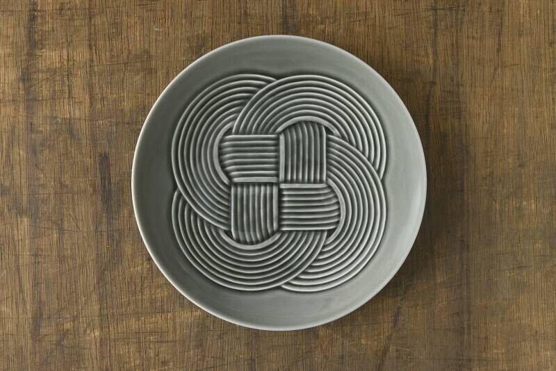 途切れることのなく続く組ひものレリーフを施した、祝いの席で使っていただきたい器です。